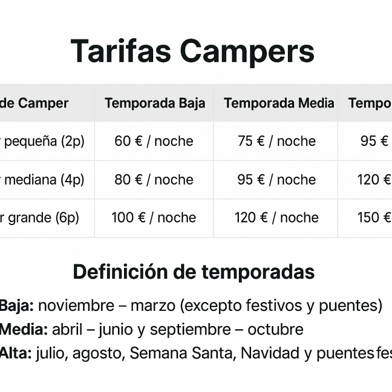 Ofrecemos tarifas competitivas para el alquiler de campers y autocaravanas.
